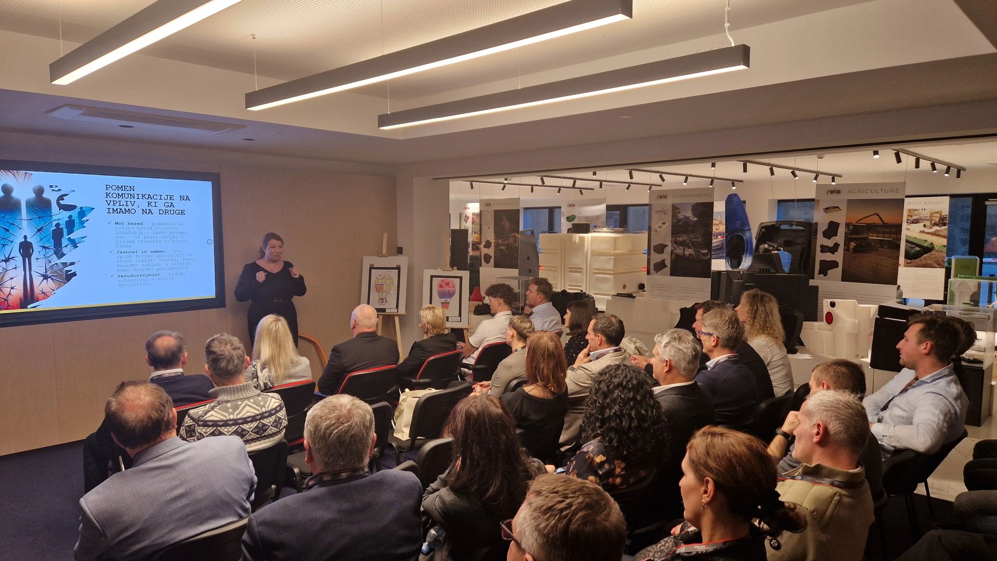 Po ogledu je sledilo motivacijsko predavanje ge. Simone Lobnik Ambrožič, ki je spregovorila o pomenu dobre komunikacije, razumevanja čustev ter njihovem vplivu na odnose in sodelovanje. Posebej je izpostavila vrednost takšnih srečanj, kjer se udeleženci lažje sprostijo, pogovor steče bolj naravno in kjer se skozi neformalno poslovno komunikacijo pogosto oblikujejo trdna in dolgoročna poslovna sodelovanja.