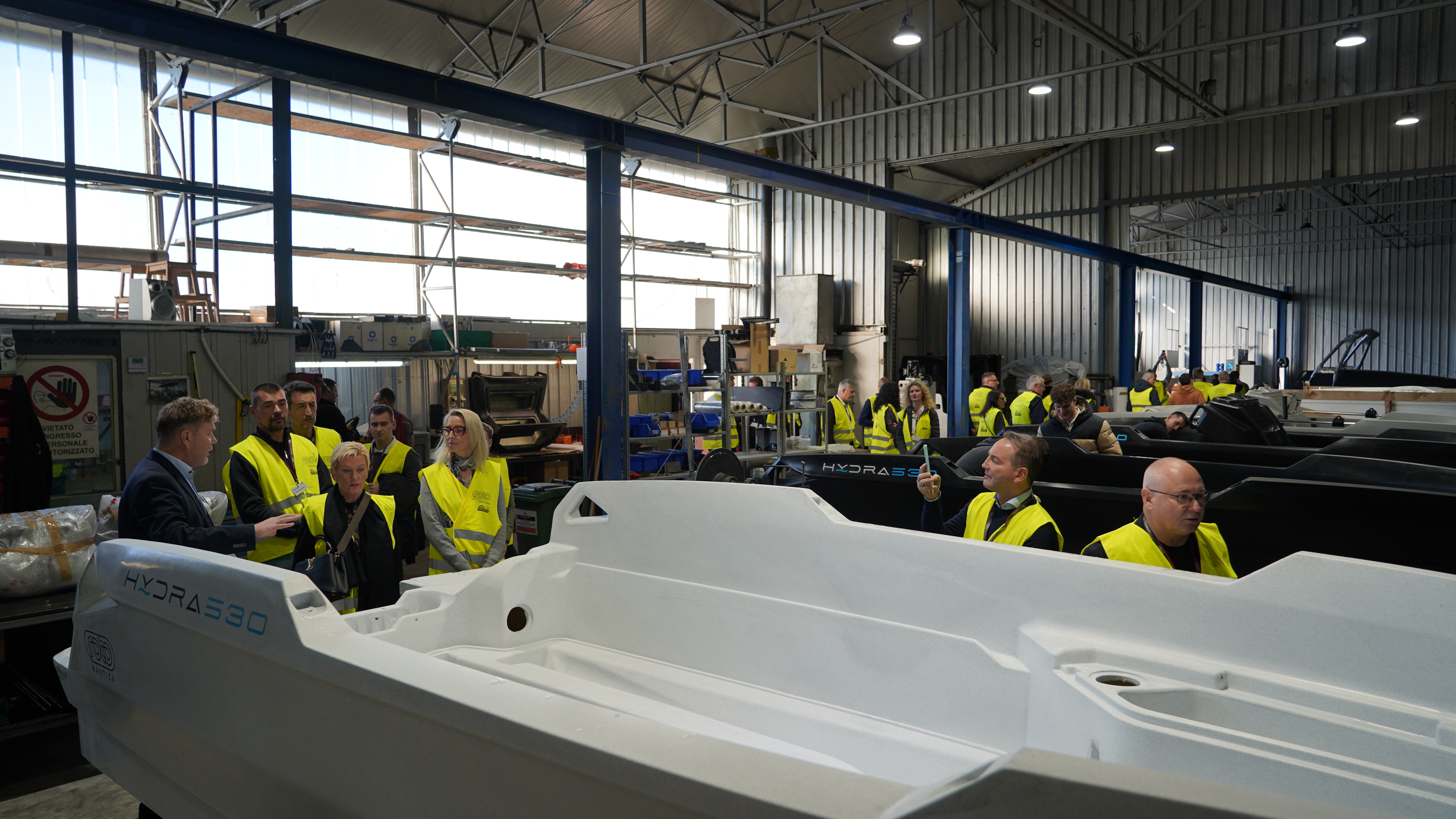 Dogodek smo začeli s strokovnim ogledom proizvodnje. G. Pavlinjek nam je osebno in zelo nazorno predstavil celoten proces razvoja in izdelave njihovih proizvodov, s posebnim poudarkom na navtičnem programu. Ogled je jasno pokazal, kako odločilni so znanje, izkušnje, nadzor nad procesi in doslednost v vseh fazah dela – vrednote, na katerih slovenska navtična industrija tradicionalno gradi svojo prepoznavnost in kakovost.
